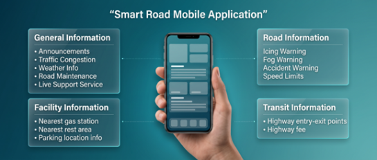 One of the most important projects being carried out simultaneously with the C-ITS Test and Application Corridor is the development of a Central Software Platform for Cooperative and Intelligent Transportation Systems. Developed using domestic resources, this central software platform aims to collect, monitor, and analyze data collected from all C-ITS and traditional ITS installed in the field under a single integrated structure. Following the completion of the central software platform, data obtained from the C-ITS Test and Application Corridor will be managed through this platform; in the future, a joint platform will be created that can be used by all Regional Directorates. With the mobile application to be implemented together with the central software, data collected regarding road conditions will be analyzed and transmitted to road users in real time.