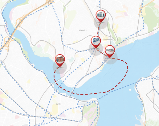 This route offers a seamless multi-modal journey combined with a unique Sea Taxi experience. It focuses on the historic Haliç Shipyard and its transformation into an innovative hub for smart and sustainable maritime mobility, where heritage and advanced technology intersect.